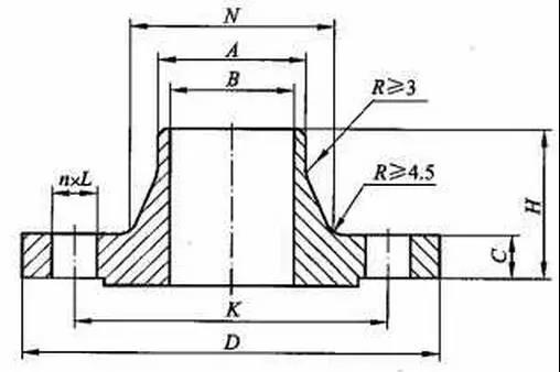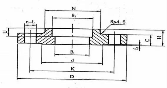 带颈平焊法兰颈部高度较低,对法兰的刚度、承载能力有所提高。与对焊法兰相比,焊接工作量大,焊条耗量高,经不起高温高压及反复弯曲和温度波动。