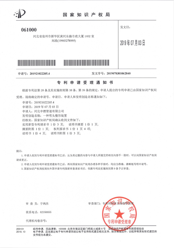 “一种法兰打孔装置”专利申请受理通知书